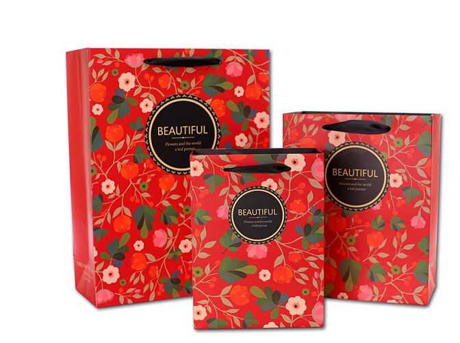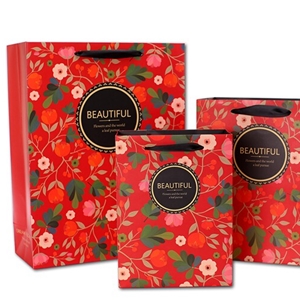 紅色印花精美化妝品白卡紙袋定制